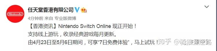 此外港服Nintendo Switch Online 也从今天开始正式为玩家服务了,支持线上游玩,收录经典游戏每月更新。由4月23日至5月6日期间,还可享“7日免费体验”,马上试玩!